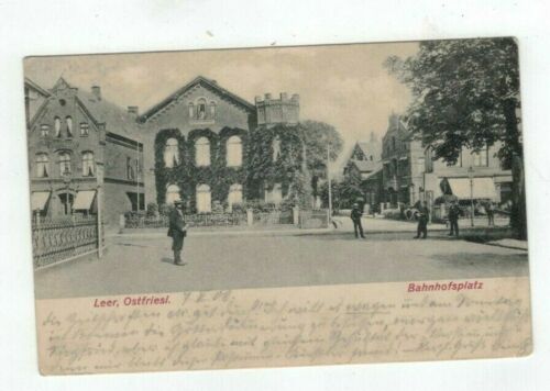 GERMANY antique 1908 post card Leer, Ostfriesl Bahnhofsplatz