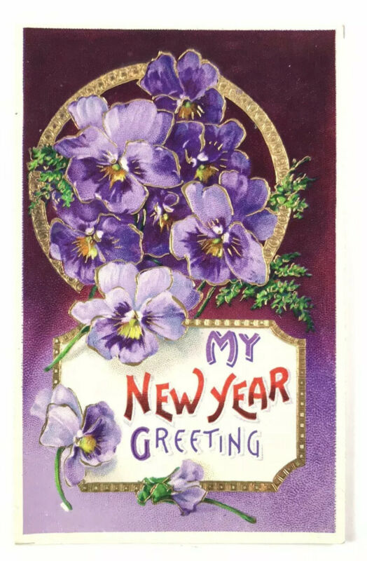 Title (ebay affiliate link): Antique My New Year Greeting Postcard Purple Flowers Gold Trim Samson Brothers
