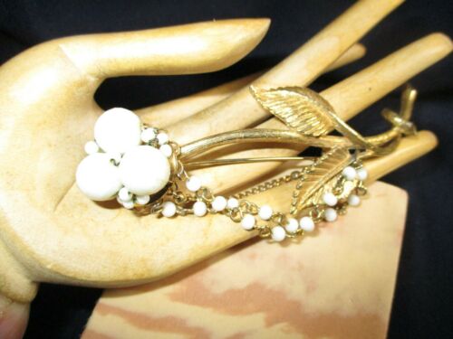 Title (ebay affiliate link): LOT 626 - ESTATE FLOWER BROOCH 3.5" LONG MILK GLASS BEADS 3 DRAPED CHAINS