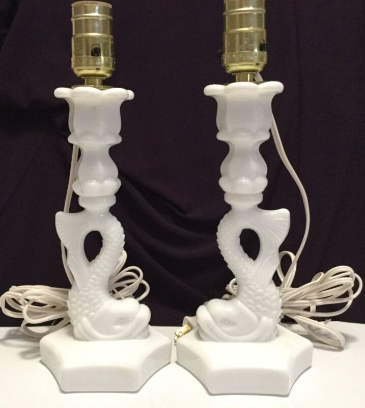 Title (ebay affiliate link): Vintage Westmoreland Milk Glass Dolphin Koi Fish Pair of Electric Lamps WORK!