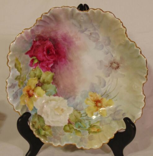 Title (ebay affiliate link): French Limoges Porcelain Master Berry Bowl Red White Yellow Roses Shell 11"