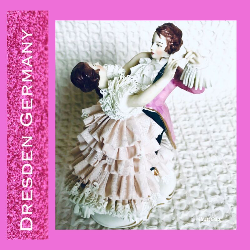 Title (ebay affiliate link): Vintage Dresden Germany Lace Porcelain Couple Dancing. White Pink BROKEN LACE
