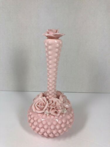 Vintage Pink Hobnail Flower Top Perfume Cologne Bottle w/ Stopper