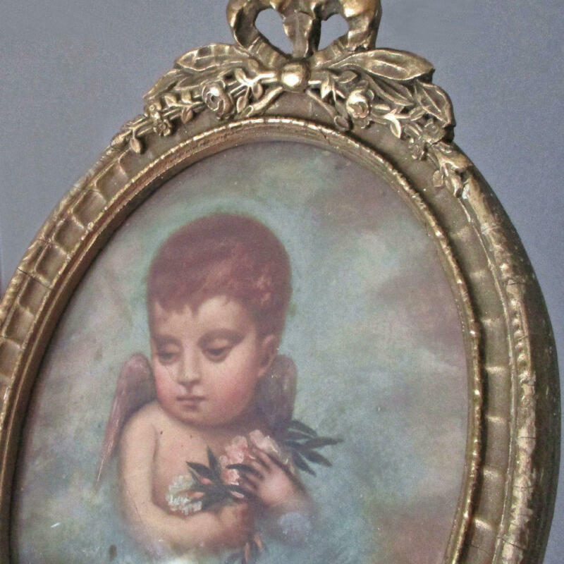 Title (ebay affiliate link): Antique Oval GILT Wood + Gesso Frame Crowned w BOW + Rose Swags * Cherub FLOWERS