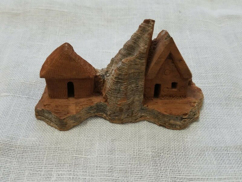 Small Vintage Hand-Carved Wood Bark House Made in Mexico