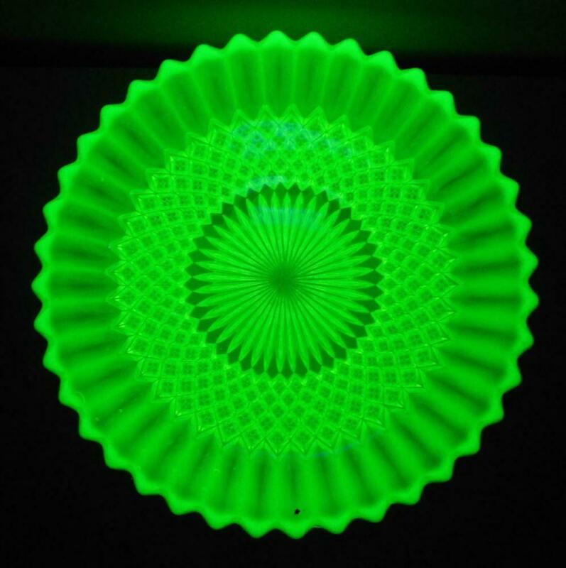 Excellent Citrine Pressed Uranium Glass Plate or Low Bowl 1900s