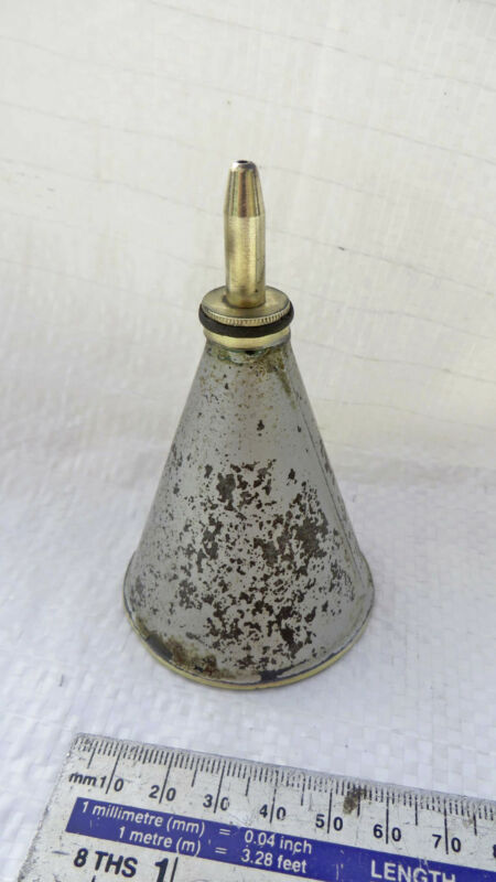 Vintage Conical Steel & Brass Bottomed Oil Can Old Tool