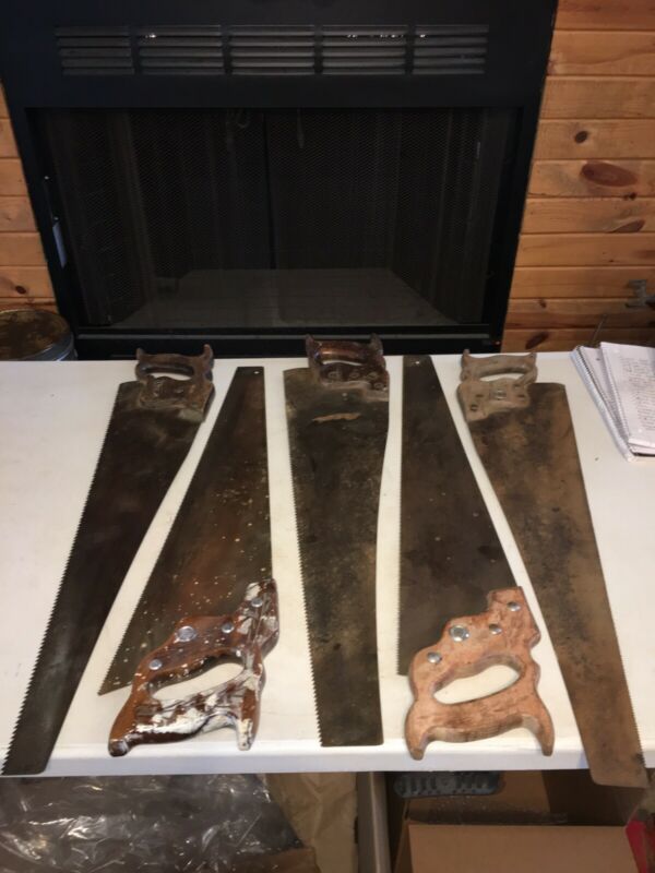 Title (ebay affiliate link): Lot Of 5 Hand Saws-4 Superior Warrented, 1 Disston USA, 5 Brass Disston Buttons