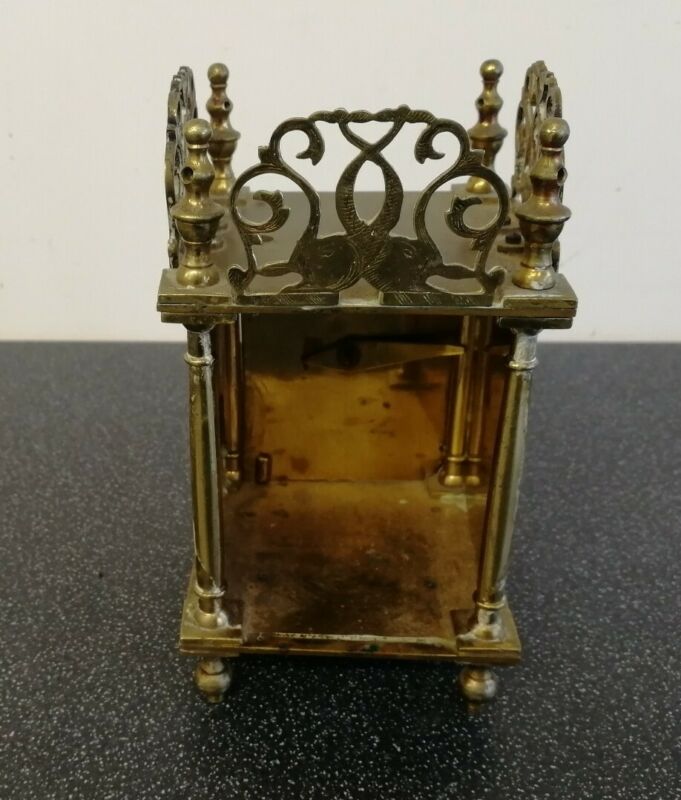 Vintage London made heavy brass lantern Carriage mantel Clock casing