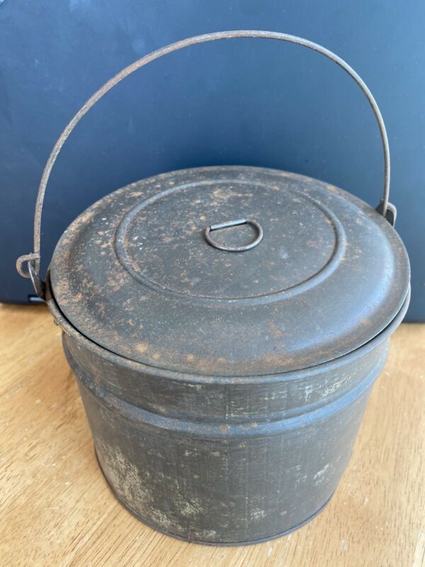 Title (ebay affiliate link): ANTIQUE TIN BUCKET ~ PRIMITIVE - FARM ~ BERRY, LUNCH, BEER PAIL ~ LID & HANDLE