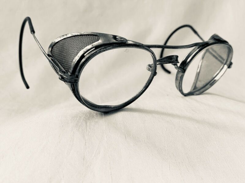 Title (ebay affiliate link): VINTAGE Silver Tone / White Metal AO GOGGLES w/ Metal Mesh Sides