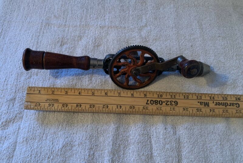 Title (ebay affiliate link): Vintage Craftman Egg Beater Hand Crank Drill & 4 Drill Bits In Body Under Cap