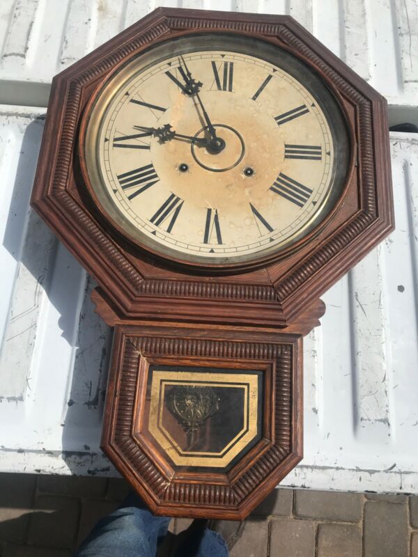 Title (ebay affiliate link): Antique Working Oak Octagon Drop School House Regulator Wall Clock