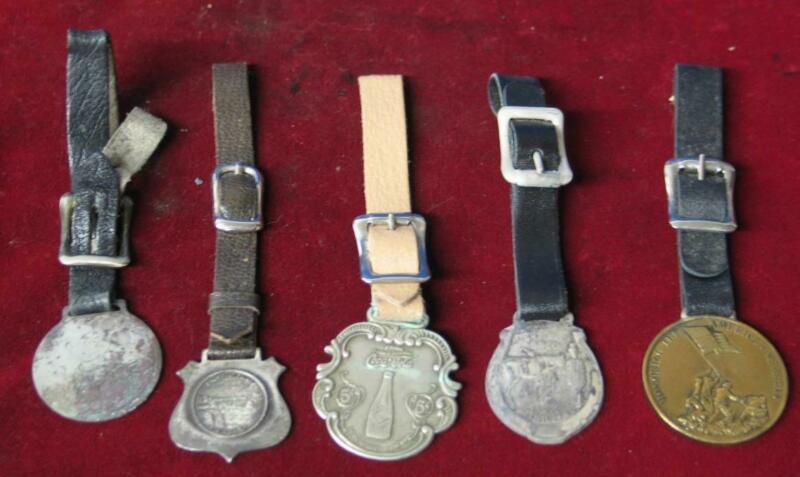 Title (ebay affiliate link): Collection of Vintage Watch Fobs Mickey Mouse, Coca Cola, Green River Whiskey Et