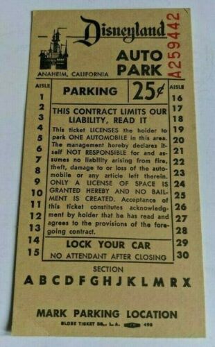Title (ebay affiliate link): Vintage 1963 DISNEYLAND AUTO PARK 25 Cent Parking Ticket Disney California