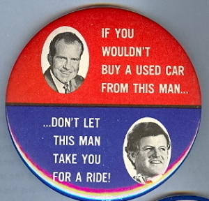 ANTI NIXON, ANTI TED KENNEDY USED CAR PIN