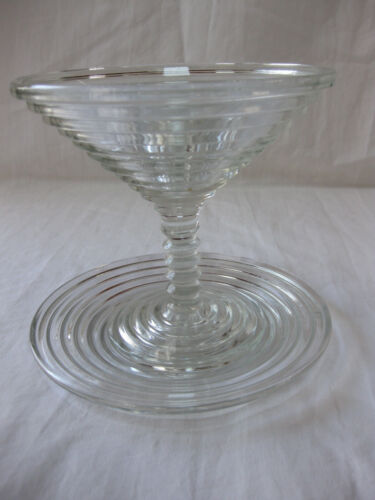 Vintage Manhattan Anchor Hocking Depression Glass Footed Compote Martini & Plate