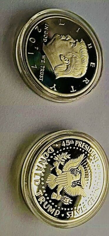 Title (ebay affiliate link): Donald Trump 2017 Silver & Gold plated EAGLE Novelty Coin set 38mm (FULL SIZE)