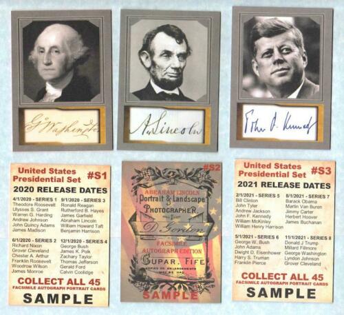 ACEO FACS AUTO Presidential Portrait 3 Card SAMPLE Set Washington Lincoln JFK