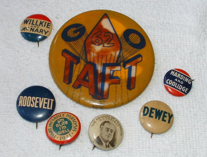 Title (ebay affiliate link): EARLY 1900s COLLECTION OF PRESIDENTIAL BAGES , ROOSEVELT , HARDING , DEWEY & MOR