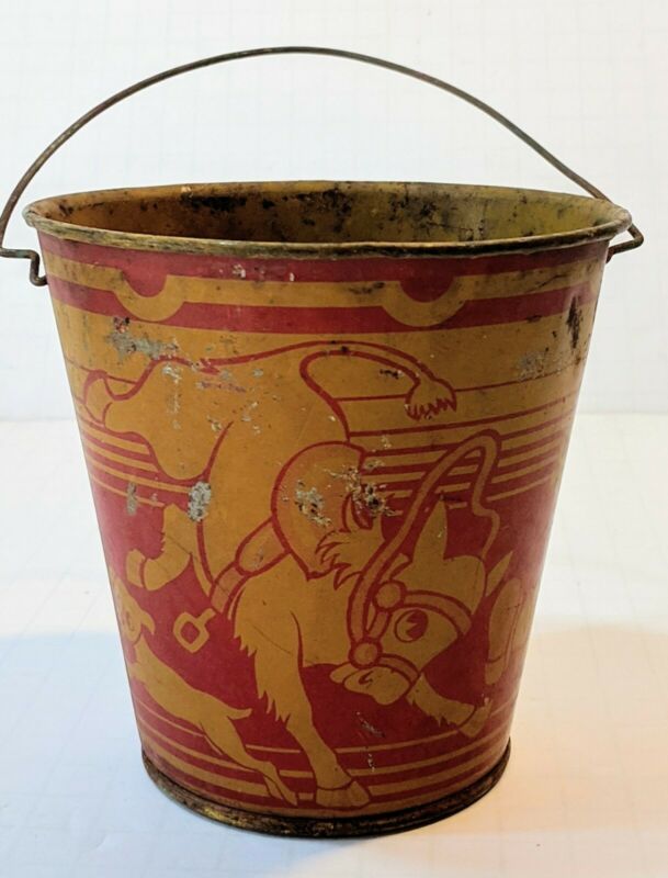 Title (ebay affiliate link): Vintage Tin Beach Bucket Sand Pail w/ Donkey, Pig, Monkey