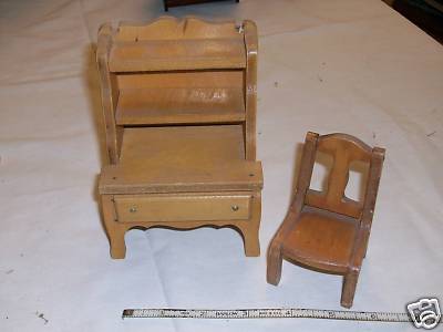 ANTIQUE DOLL HOUSE HAND MADE WOOD FOKE ART DESK+CHAIR