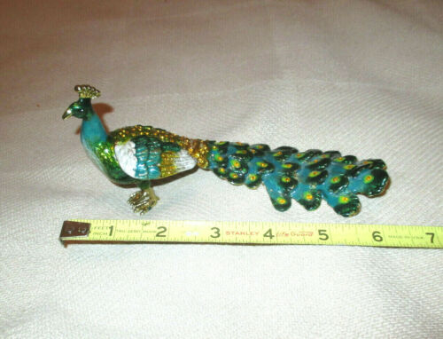 Title (ebay affiliate link): Peacock Enameled Trinket Pill Box Bejeweled Hinged w/Magnet Clasp