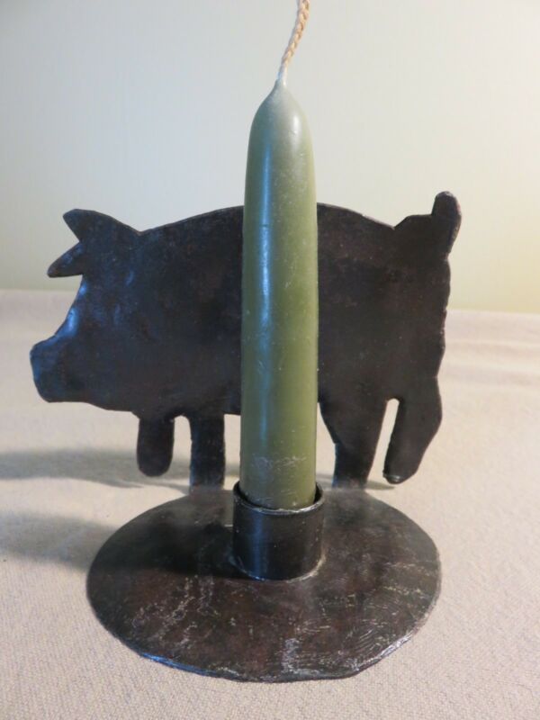 Title (ebay affiliate link): Antique Vintage Primitive Black Metal Old Farm House PIG Candle Holder-Handmade