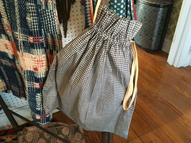 Title (ebay affiliate link): Old Primitive Blue White Gingham Fabric Textile Bag, Sack ~ Peg Rack