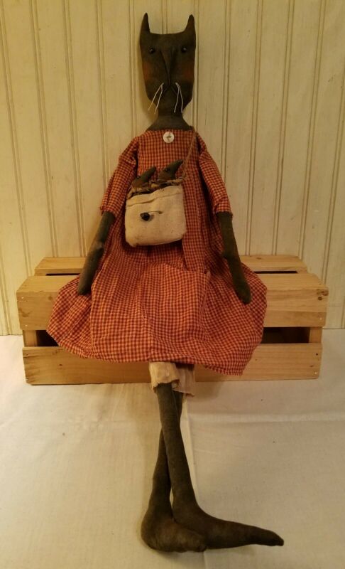 Title (ebay affiliate link): Primitive Grungy Tall Black Kitty Cat Doll & Her Baby Crow Chicks