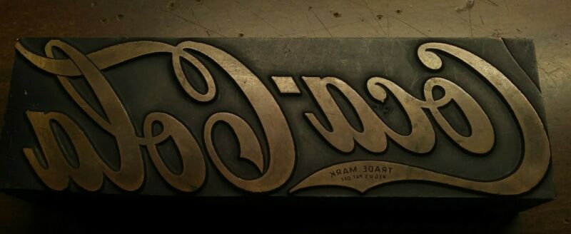 Vintage COCA-COLA LOGO Printers Wood Block Metal plate Coke Print Stamp