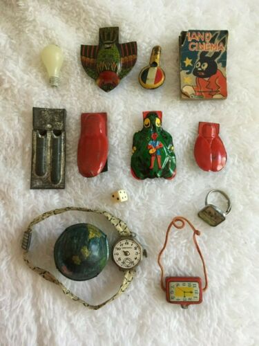 Vintage Cracker Jack Metal Whistle Cricket Clicker Watch Hologram Ring Globe etc