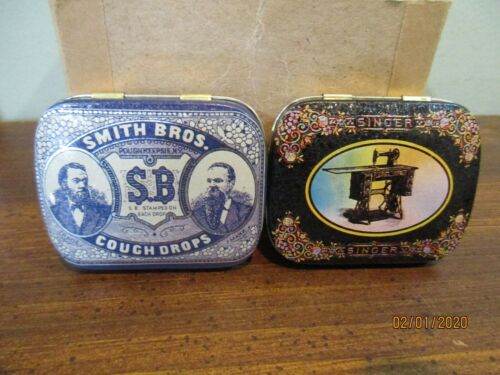 Title (ebay affiliate link): 2 Mini Tin Boxes Bristol Ware Smith Brothers & Singer sewing 2 3/8" X 2"