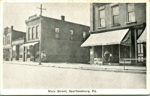 Antique Postcard SPARTANSBURG Pennsylvania "MAIN STREET" STORES