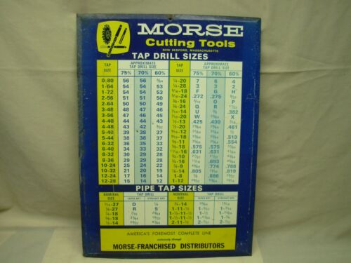 Title (ebay affiliate link): VTG MORSE CUTTING TOOLS NEW BEDFORD MA PIPE & TAP DRILL SIZES METAL CHART SIGN