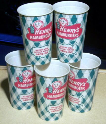 Title (ebay affiliate link): 6 Henry''s Hamburgers Drive-In Cups from the 1950''s - Unused