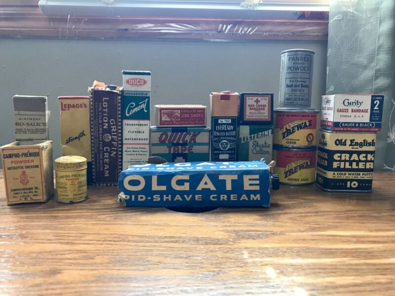 VINTAGE ANTIQUE LOT OF 16 OLD ADVERTISING PRODUCTS
