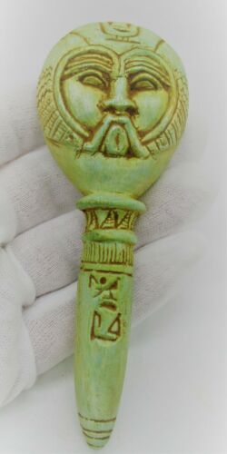 Title (ebay affiliate link): SUPERB ANCIENT EGYPTIAN GLAZED FAIENCE SCEPTRE WITH HEAD OF BES ON TOP