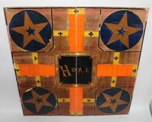 Antique PRIMITIVE Folk Art PARCHEESI BOARD
