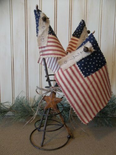 Title (ebay affiliate link): Trio of Primitive Handmade Americana Flags in Vintage Rusty Bed Spring