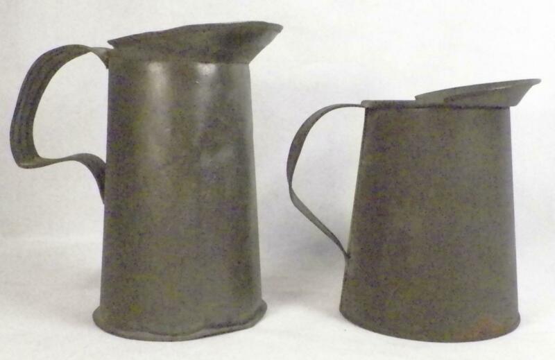 2 Vintage Tin Measure Scoop Pitchers Primitive Country Kitchen Grain