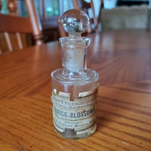 Rare 1875 perfume bottle TB Bailey''s French Odeur Orange Blossom Milford Mass.
