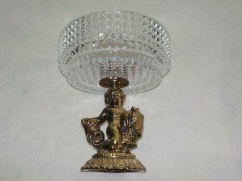 Vintage Cornell Glass Footed Compote with Cherub Riding Dolphin