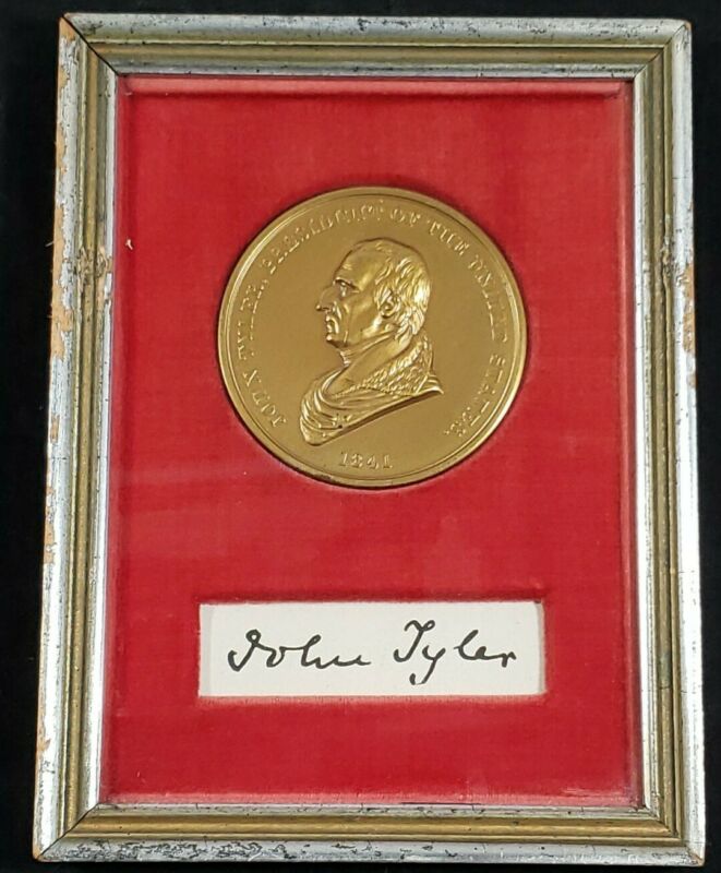 Title (ebay affiliate link): VINTAGE FRAMED BRONZE 3" COIN OF JOHN TAYLER PRESIDENT #10 AS PICTURED