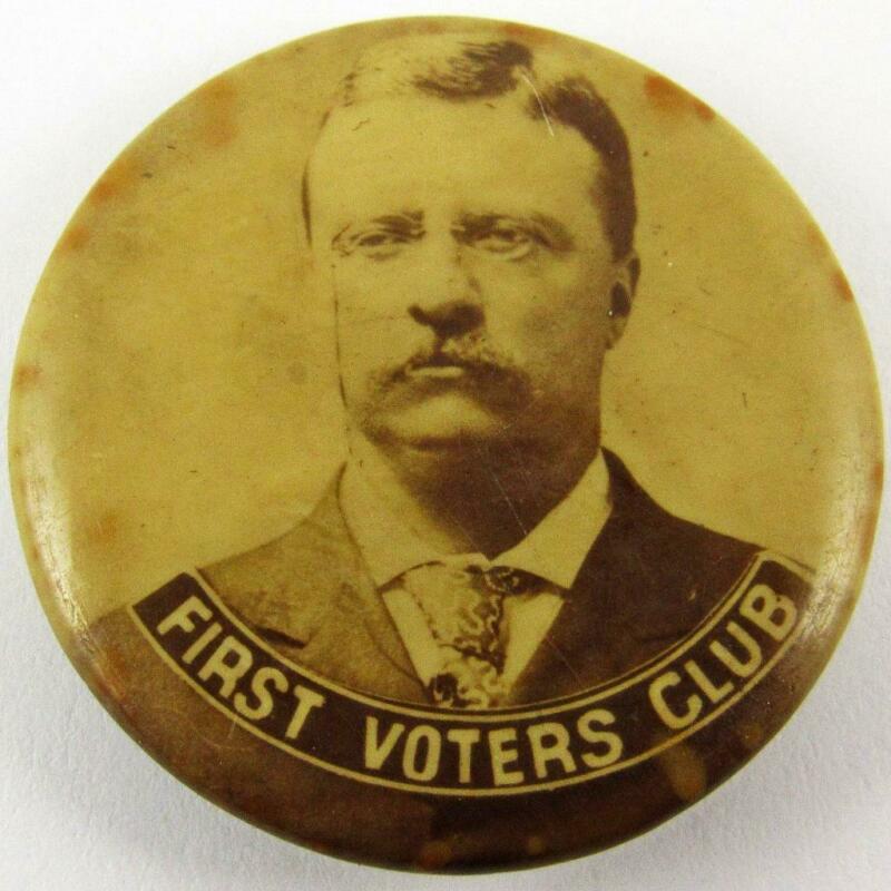ANTIQUE 1904 TEDDY ROOSEVELT FIRST VOTERS CLUB POLITICAL CAMPAIGN 1" PIN BUTTON