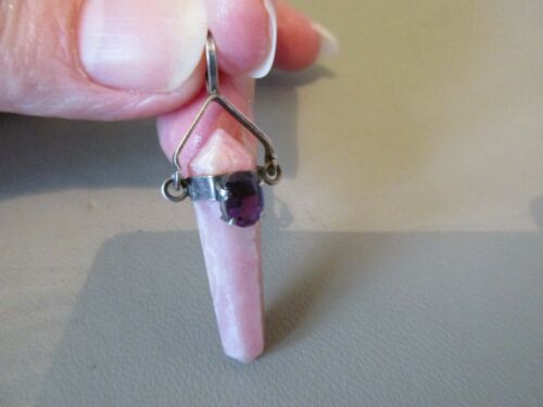 ANTIQUE VINTAGE LARGE 925 STERLING SILVER ROSE QUARTZ CRYSTAL FOB CHARM PENDANT