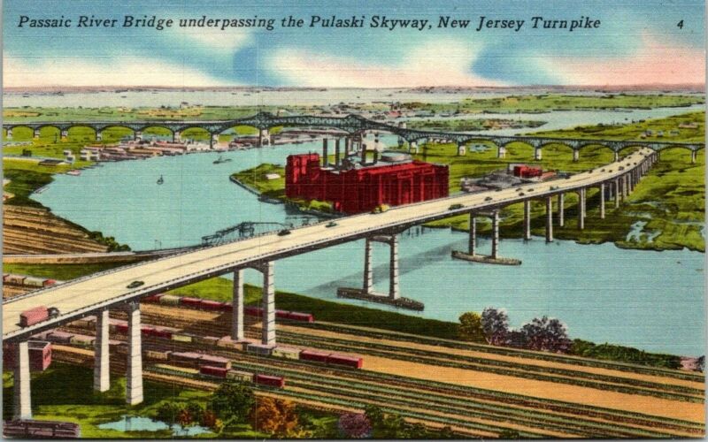 Title (ebay affiliate link): C33-2879, PASSAIC RIVER BRIDGE, PULASKI SKYWAY, NEW JERSEY TURNPIKE. POSTCARD.