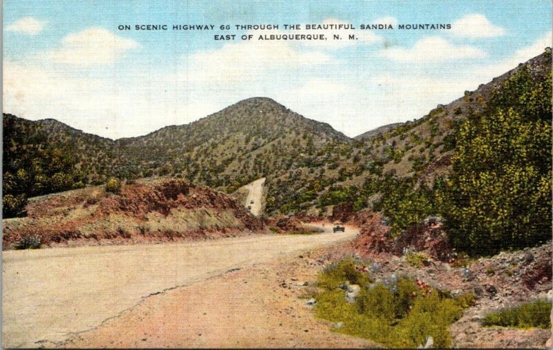 Title (ebay affiliate link): C33-2884, HWY. 66 THRU. SANDIA MTNS., ALBUQUERQUE, NM. POSTCARD.