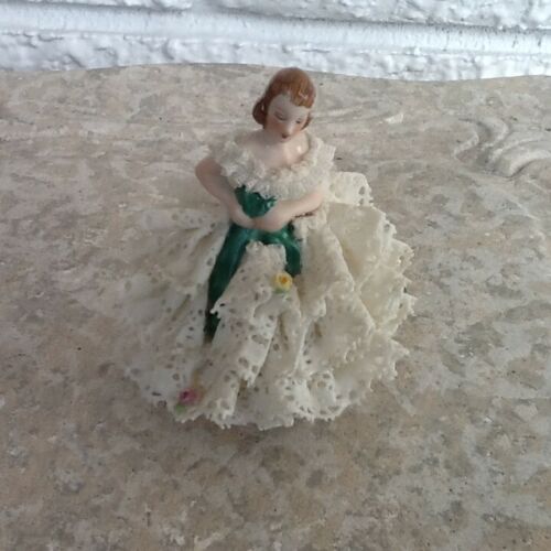 Antique Lady Dresden Lace Dress Germany Porcelain Figurine Girl With flowers