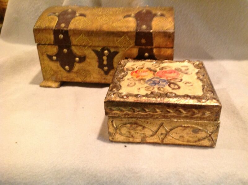 2 Vintage Florentia Wood Florentine Italian Tole Toleware Shabby & Chic Boxes